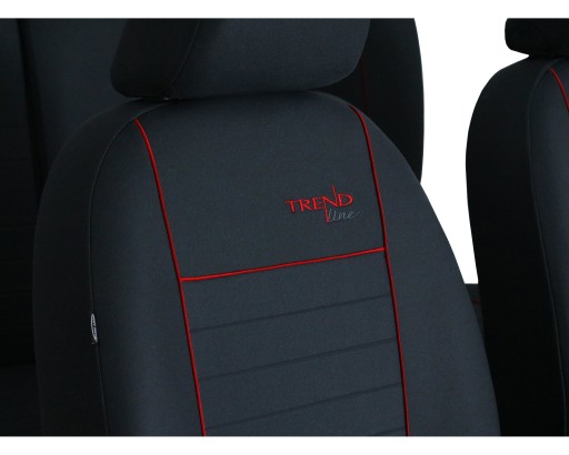 Pokrowce miarowe TREND LINE wykonane są z dzianiny tapicerskiej w kolorze popielatym – nowością w ofercie jest tłoczona faktura materiału zastosowanego na pas środkowy. Atutami tego typu tkaniny oprócz walorów estetycznych jest również lepsza cyrkulacja powietrza, która zwiększa komfort użytkowania. Między łączeniami materiałów zastosowano lamówkę, co znacznie polepsza trwałość produktu. Dodatkowo możliwość wyboru jej koloru nadaje indywidualny charakter pokrowcom.