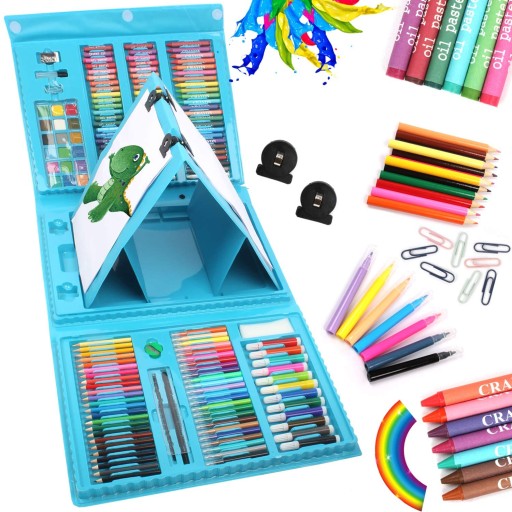 208 Elementów - przy pomocy ogromnego wyboru, składającego się z pasteli olejnych, kredek, farb, pędzli, temperówki i wiele więcej, dzięki którym z łatwością stworzysz najbardziej wymyślne, kreatywne i oryginalne prace.