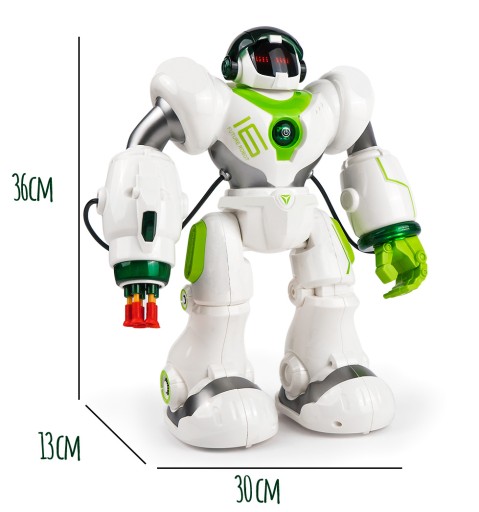 Robot może być zabawnym imprezowiczem i wykonywać oryginalny taniec robotów lub śpiewać, ale na jedno skinienie właściciela może stać się robotem obronnym – wydawać odstraszające dźwięki, walczyć i strzelać (bezpiecznymi strzałkami, żeby Twoje dziecko było bezpieczne).