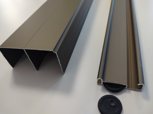 Na aukcji sprzedaję zestaw elementów potrzebny do złożenia 3-skrzydłowej szafy o szerokości 3m (można przyciąć na mniejszą szerokość) i dowolnej wysokości (profile należy przyciąć na potrzebną wysokość) max 270 cm