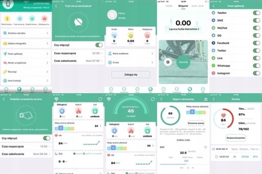 - Pełna kompatybilność z systemami Android i iOS - Po sparowaniu opaski ze smartfonem za pomocą aplikacji która jest darmowa i którą można pobrać ze sklepu Google Play lub App Store, mamy dostęp do analiz, statystyk, raportów i danych z aktywności sportowych, raportów z jakości snu, raportów z pulsometru, raportów z ciśnienia i natlenienia krwi. W aplikacji możemy utworzyć i zapisać profil użytkownika.