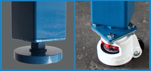 W standardzie noga o wymiarze 100 x 100 mm zakończona stopką z możliwością poziomowania.