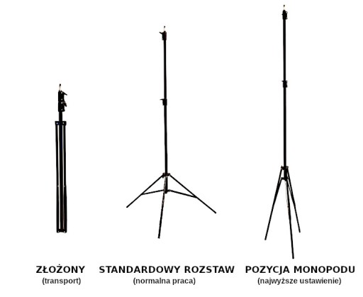 - maksymalna wysokość pracy w pozycji monopodu: 215cm