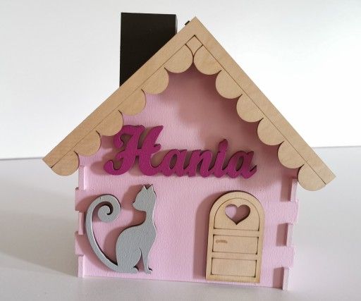 Ponadto każdy domek posiada spersonalizowany napis z imieniem dziecka oraz wybrany dekor.