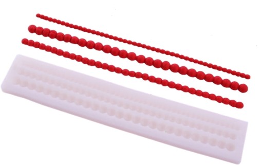 Forma silikonowa do wykonywania ozdób z masy cukrowej sznur pereł. Dzięki formie w łatwy sposób wykonasz perełki w trzech rozmiarach.