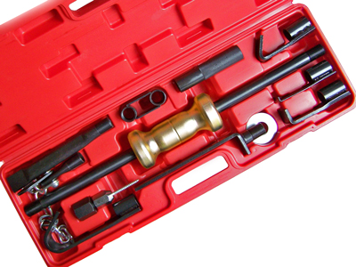 Przeznaczony do wszelkich prac blacharskich Ma zastosowanie również przy wyciąganiu bieżni łożysk i innych ciasno osadzonych części szczególnie z trudno dostępnych miejsc. W zestawie znajduję się różnego rodzaju chwytaki, pobijaki, redukcje itp. Całość bardzo przydatna w każdym warsztacie. Gwinty solidnie żłobione, mocne a stal dobrze wyhartowana.