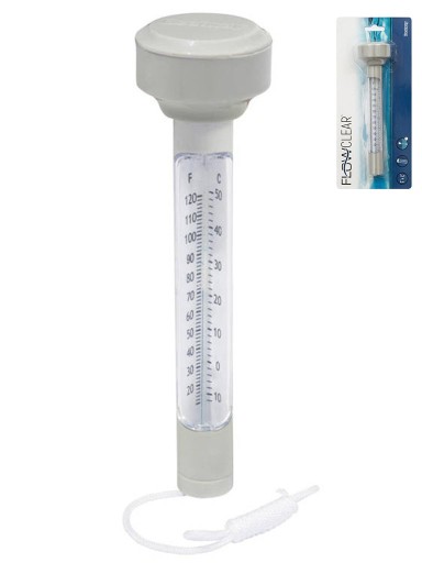 Pływający termometr basenowy pozwala na dokładne określenie temperatury w basenie ogrodowym. Mierzona temperatura wyświetlana jest w stopniach Celsjusza i Fahrenheita. Termometr swobodnie unosi się na wodzie, ale dzięki dołączonemu sznurkowi łatwo utrzymać go w jednym miejscu.