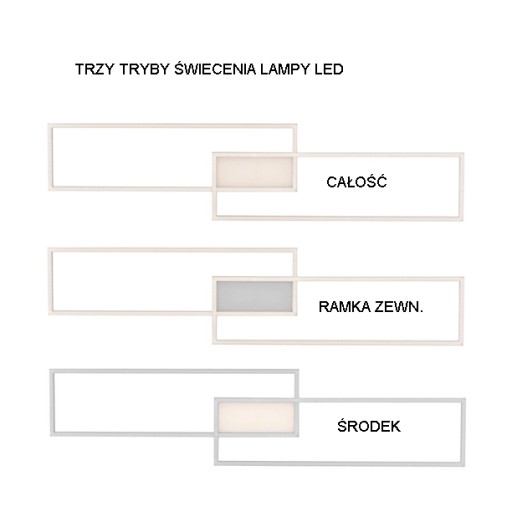 Lampa jest wyposażona w 3 stałe zainstalowane źródła LED. Dwa źródła umiejscowione na kwadratowych ramkach: 2 x 16,5 W oraz źródło środkowe o mocy 9 W. Całość mocy to aż 42 W.