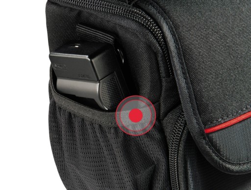 Torba posiada dużą komorę na aparat, której wnętrze jest wyściełane miękkim polarem. Z przodu znajduje się dodatkowa kieszeń z organizerem zamykana na zamek błyskawiczny, w której możesz wygodnie przechowywać karty pamięci i inne drobiazgi, druga niewielka kieszonka jest umieszczona pod pokrywą głównej komory. Ponadto po bokach znajdują się dwie kieszenie z siatki, do których możesz włożyć często używane akcesoria, a z tyłu jest dodatkowa płaska komora na dokumenty.