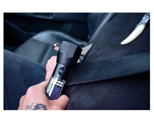 Warto posiadać w samochodzie narzędzie, które może uratować życie w krytycznej sytuacji. Pasy bezpieczeństwa często chronią kierowcę i pasażerów przed śmiercią, jednak zdarzają się wypadki, w których ludzie zostają uwięzieni w pojeździe, ponieważ mechanizm pasów się zaciął. W latarkę wbudowany jest ostry nóż, który bez kłopotu przetnie pas i pozwoli wydostać się na zewnątrz.