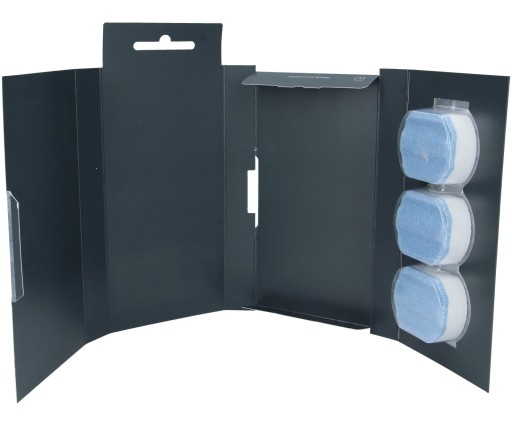 Zawartość oferowanego zestawu obejmuje: wkład filtrujący do wody, wycior, 10x tabletki czyszczące, 3x tabletki odkamieniające