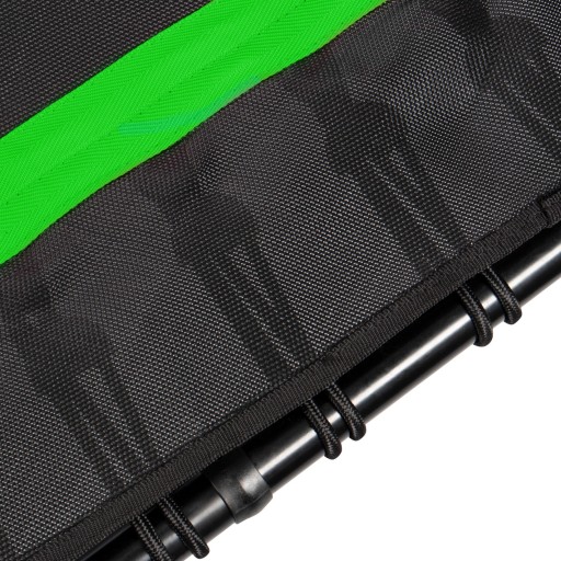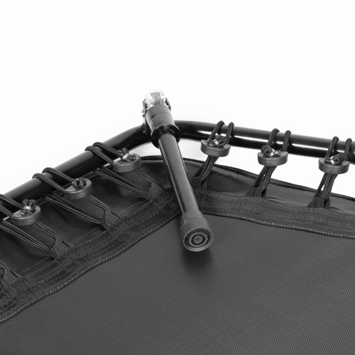 Trening na trampolinie angażuje ponad 400 mięśni, co sprawia, że skoki na trampolinie są bardziej efektywnym treningiem niż np. na trampolinie. B. Bieganie. Gumowe liny zapewniają idealną amortyzację podczas skoków i oszczędzają stawy. Antypoślizgowa płachta do skakania zapewnia bezpieczne trzymanie podczas treningu.