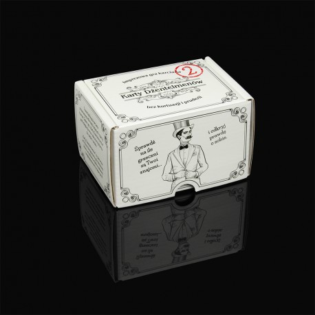 Karty Dżentelmenów: Epizod Drugi dzięki eleganckiej oprawie nadaje się na wyszukany i na pewno trafiony prezent. Jako jedyna na polskim rynku gra karciana zawiera anglojęzyczne odpowiedniki pytań i odpowiedzi, dzięki którym pokonuje bariery międzykulturowe i umożliwia zabawę na międzynarodowym poziomie. Uwaga! Karty Dżentelmenów: Epizod Drugi to samodzielny produkt nie wymagający pierwszej edycji gry. Oba produkty można ze sobą łączyć - zawierają inne zestawy kart.