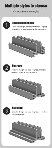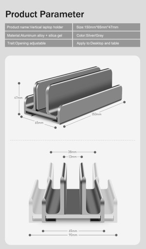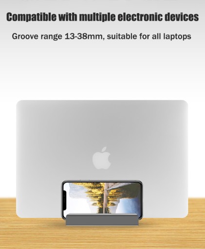 Uniwersalny pionowy stojak na laptopa to idealne rozwiązanie, aby utrzymać porządek na biurku lub stole.Wykonany z nowoczesnym akcentem stojak HS412 koloru szarego to elegancki dodatek do biurka i elegancki dodatek do Twojego miejsca pracy.