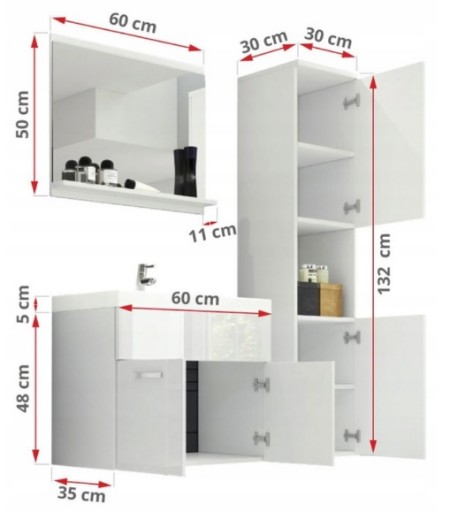 Мебель для ванной комнаты 60 зеркальный шкаф умывальник 2 стойки
