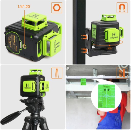 Huepar 904DG 4 x 360 zielony laser poziomujący