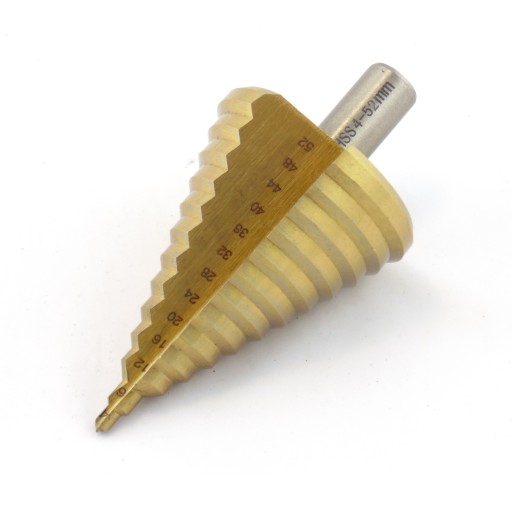 Bardzo wysokiej jakości wiertło stopniowe stożkowe, wykonane z wysokogatunkowej stali szybkotnącej HSS + TYTAN.