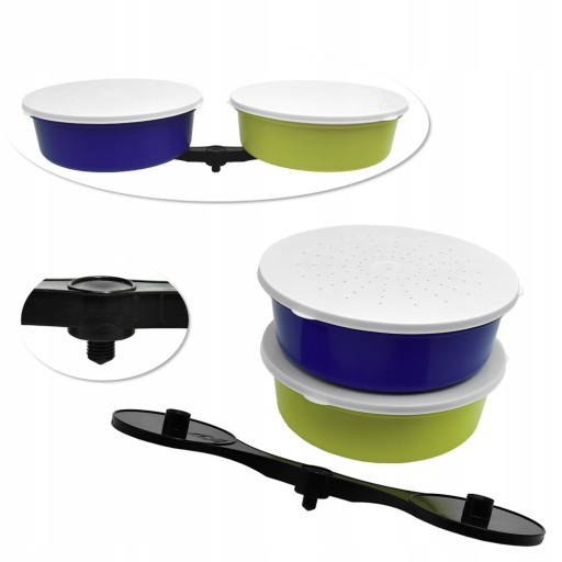Pojemniki posiadają perforowane pokrywki zapewniające dostęp tlenu dla żywej przynęty.