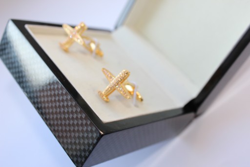 - Spinki są zapakowana w ekskluzywne etui z wzorem skóry węża o wymiarach ok. 70x70x40 mm.