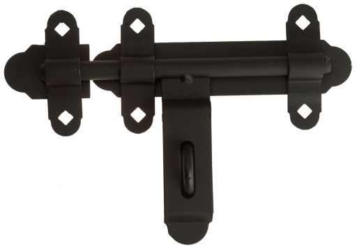 - Produkt charakteryzuje się kutą stalową, solidną budową, przez co posłuży jako trwałe zabezpieczenie bramy.