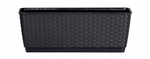 Prostokątna doniczka z fakturą imitującą plecionkę rattanową.
