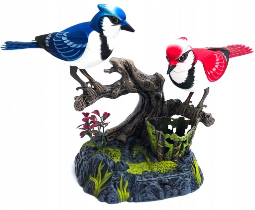 Reagują na dotyk i dźwięk. Wystarczy klasnąć lub dotknąć a pokój wypełni się pięknym ptasim śpiewem. Ptaszki kołyszą się w przód i w tył poruszając dziobkami.