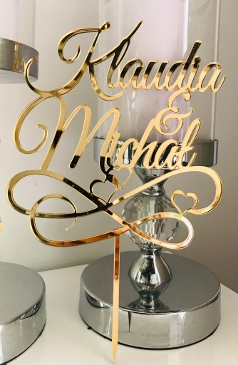 ТОППЕР топпер ИМЕНА ДЛЯ СВАДЕБНОГО ТОРТА ЗОЛОТО ЗЕРКАЛО