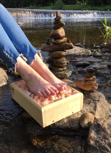 Detoksykacja: Po umyciu nóg lub po kąpieli kładziemy stopy na ciepłą solną lampę. Przez rozszerzone pory skory kryształy soli aktywnie wchłaniają wodę razem z toksynami oraz inne zanieczyszczenia organizmu. Po wchłonięciu płynu z toksynami kryształ solny dzięki dużej zawartości naturalnego Chlorku niszczy toksyny, a oczyszczoną wodę wraz z mikroelementami które są zawarte w kryształach solnych odparowuje i za tym wchłania się s powrotem do naszych stop.