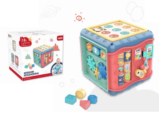Kostka wielofunkcyjna dla malucha rozwijająca wyobrażnie i motoryke.Każdy ciekawy świata odkrywca znajdzie cos dla siebie.