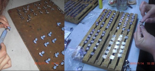 - Spinki wykonano w całości z metalu, pokryto galwanicznie trwałą, nieścieralną warstwą chromu oraz pomalowano kolorowymi emaliami.