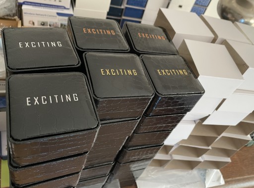 Spinki są zapakowane w eleganckie czarne pudełko z wytłaczanym wzorem skóry węża. W serii Exciting kolekcja kibica ukazały się także spinki drużyn; Bayern, Manchester, Chelsea, ACMilan, Juventus, FCBarcelona, Inter Mediolan.
