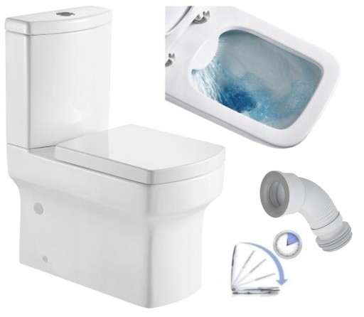 W KOMPLECIE: miska, zbiornik ze spłuczką, deska, zestaw montażowy, kolanko odpływu