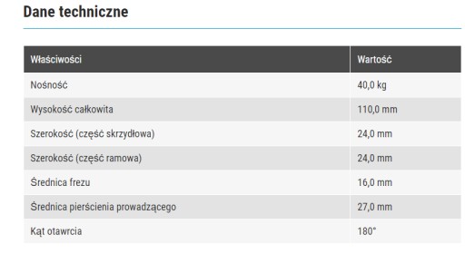 - ciężar drzwi mniejszy/równy 60 kg używamy 2 zawiasy