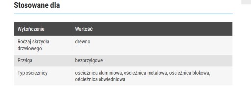 - do drzwi drewnianych, bezprzylgowych, wewnętrznych