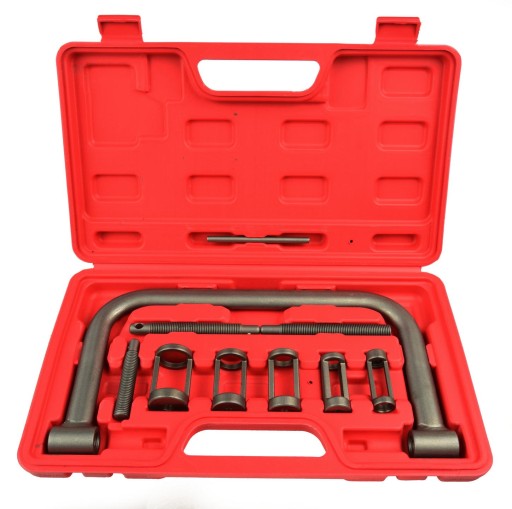 Zestaw do montażu i demontażu zaworów głowicy. Przyrząd przystosowany do pracy z silnikami diesla oraz benzynowymi. Zestaw zawiera pięć specjalnych końcówek dostosowanych do talerzyków zaworów o różnej średnicy. Urządzenie poozwala na wymianę zaworów, docieranie zaworów, wymianę sprężyn zaworowych oraz wymianę uszczelniaczy zaworowych