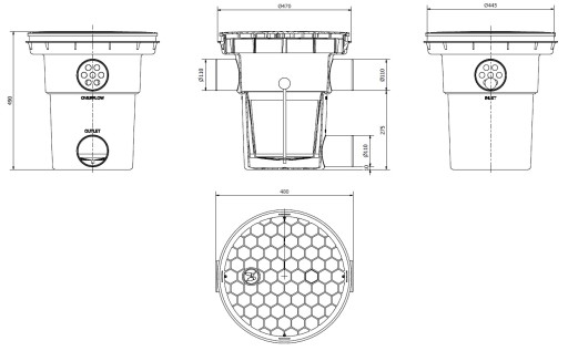 Filtr przelewowy do wody deszczowej D400 AQ, jest dedykowany do montażu wraz ze: