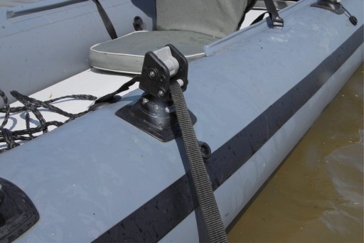 Mechanizm blokujący utrzymuje kotwicę w podniesionej pozycji bez potrzeby dodatkowego zabezpieczenia. Do blokady można użyć 32mm taśmy lub 10 mm liny.