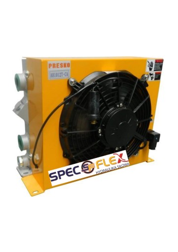 Chłodnica oleju hydraulicznego AH1012T-CA, zaprojektowana do celów mobilnej hydrauliki, gdzie wymagane są wysokie osiągi i wydajność, a fizyczne wymiary muszą być jak najmniejsze aby zapewnić łatwa instalację.