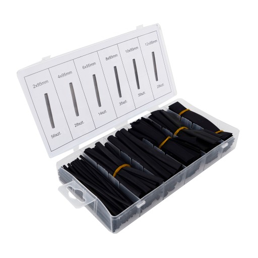 НАБОР ТЕРМОУСАДОЧНЫХ ТРУБОК 196ШТ, ЧЕРНЫЙ