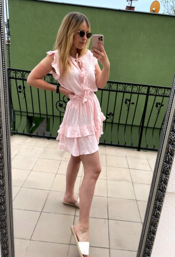 Spódniczka ze zwiewna falbanką, z gumką w pasie, która pozwoli dopasować się do figury.