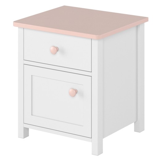 Stolik nocny z szufladą i drzwiami przyda się w każdej strefie wypoczynku. Przechowasz w nim wszystkie niezbędne drobiazgi, posłuży też jako blat pod lampkę do czytania. Mebel wykonano z wytrzymałej płyty laminowanej wykończonej trwałym obrzeżem ABS. Uchwyty z tworzywa.