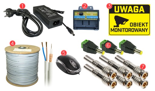 Wszystkie potrzebne wtyki i akcesoria do uruchomienia systemu monitoringu!