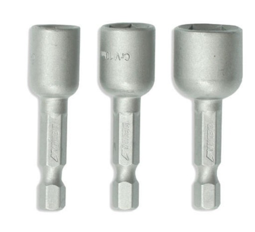 Zestaw nasadek magnetycznych w rozmiarze 8, 10, 13mm i długości 48mm. Nasadki wykonane z wytrzymałej stali chromowo wanadowej, która gwarantuje nasadce odpowiednią trwałość i odporność na korozje. Wewnątrz nasadki znajduję się magnes, który pomaga spozycjonować śrubę podczas wkręcania.