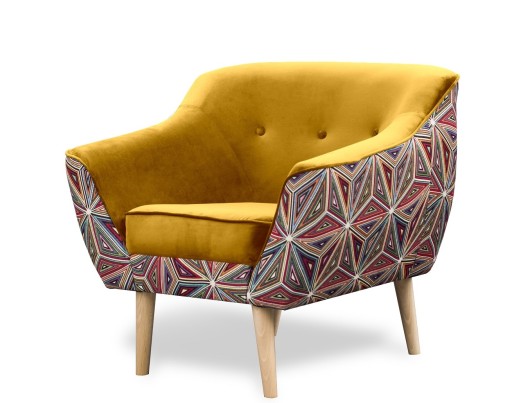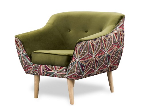 Tył fotela obity jest tkaniną wzorzystą MALAWI.