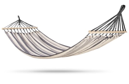 Hamak jest wykonany aż w 65% z bawełny co pozwala na optymalną wentylację. W znaczny sposób wpływa to na jakość Twojego odpoczynku, zwłaszcza w upalne dni, gdyż przepuszcza powietrze i Twoja skóra optymalnie oddycha. Pozostałą część materiału stanowi wysokiej jakości poliester, który gwarantuje elastyczność i dużą wytrzymałość siedziska. Mocne, prawidłowo splecione linki montażowe połączone z drewnianym pałąkiem, gwarantują dużą stabilność i pewność konstrukcji oraz jego idealne wyważenie. Sprawia to, że montaż hamaka jest bardzo prosty.