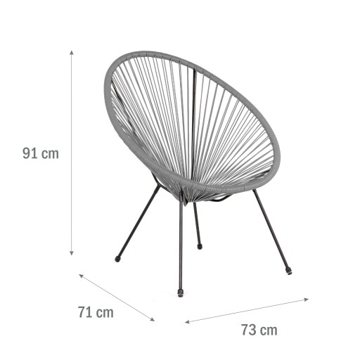 Zestaw mebli ACAPULCO składa się z dwóch bardzo wygodnych foteli i doskonale dobranego do nich stolika. Siedziska foteli wykonane są z syntetycznych rattanowych żyłek , który nie tylko jest materiałem zapewniającym komfort użytkowania, ale także świetnie prezentuje się na tle zieleni kwiatów i krzewów. Blat stolika jest wykonany ze szkła
