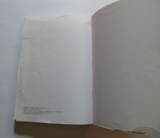 Przybrudzenia rantów, uszkodzenie tylnej okładki, naddarcie ostatniej strony