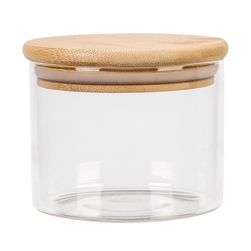 Słoik szklany / pojemnik 390 ml z drewnianą przykrywką z uszczelką.