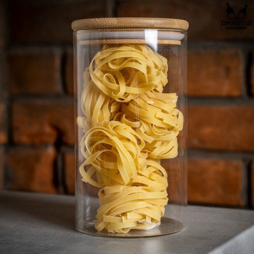 Słoik szklany / pojemnik 1000 ml z DREWNIANĄ przykrywką z BAMBUSA oraz USZCZELKĄ