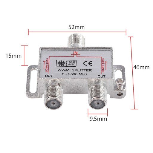 Wysokiej jakości małostratny ekranowany splitter, (rozgałęźnik sygnału telewizyjnego), posiadający 1 wejście i 2 wyjścia.Splitter pracuje w zakresie 5-2450 MHz. Doskonale nadaję się do rozgałęźnika sygnału telewizji naziemniej oraz satelitarnej.